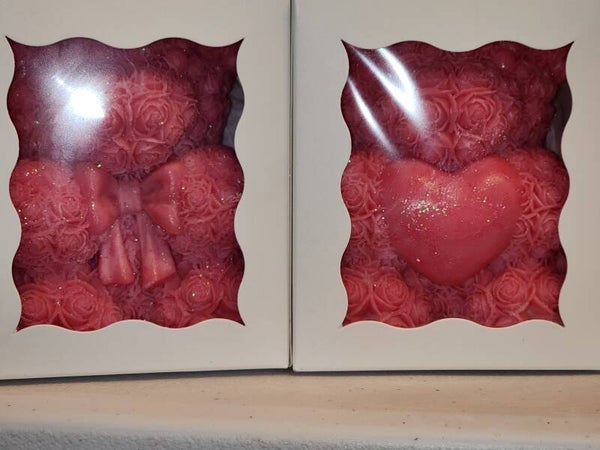 Rose Covered Bear W/ Heart Candle Wickless or With Wick - 4" Candles